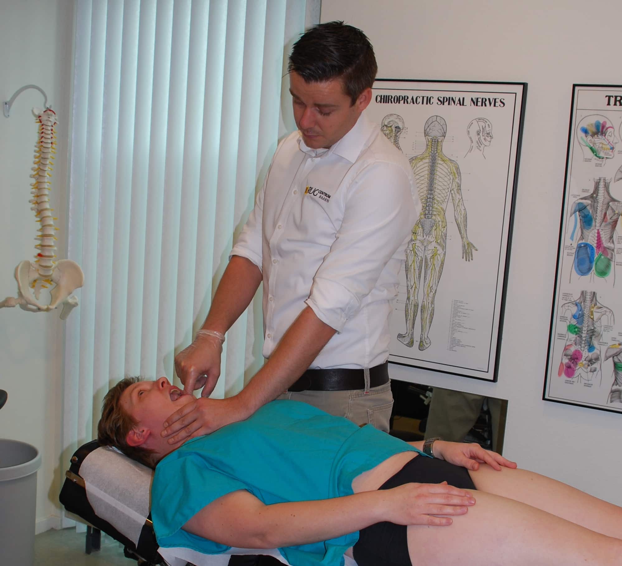 Met kaakklachten kunt u terecht bij de chiropractoren van Rugcentrum Baarn. Bij het eerste bezoek wordt een onderzoek gedaan naar de functie van de kaak; de beweeglijkheid van de gewrichten en de spanning op de spieren er omheen. Ook wordt de nek onderzocht, omdat nekklachten vaak samen gaan met problemen aan de kaak of het gezicht. Vervolgens kan de kaak behandeld worden met behulp van correctie van het gewricht en speciale druk- en stretch technieken van de omliggende spieren. Ook kunnen oefeningen gegeven worden voor de kaken en advies over een correcte houding. Bij tandheelkundige problemen kunt u geadviseerd worden een afspraak te maken bij uw tandarts.