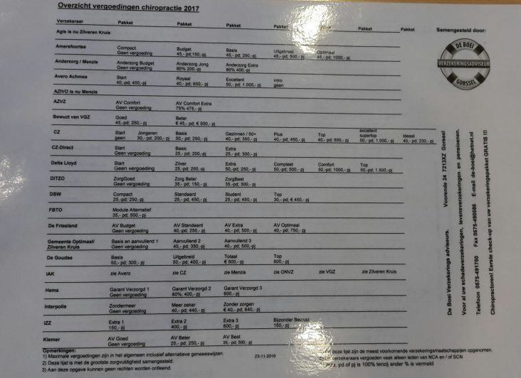 Vergoeding Chiropractie 2017